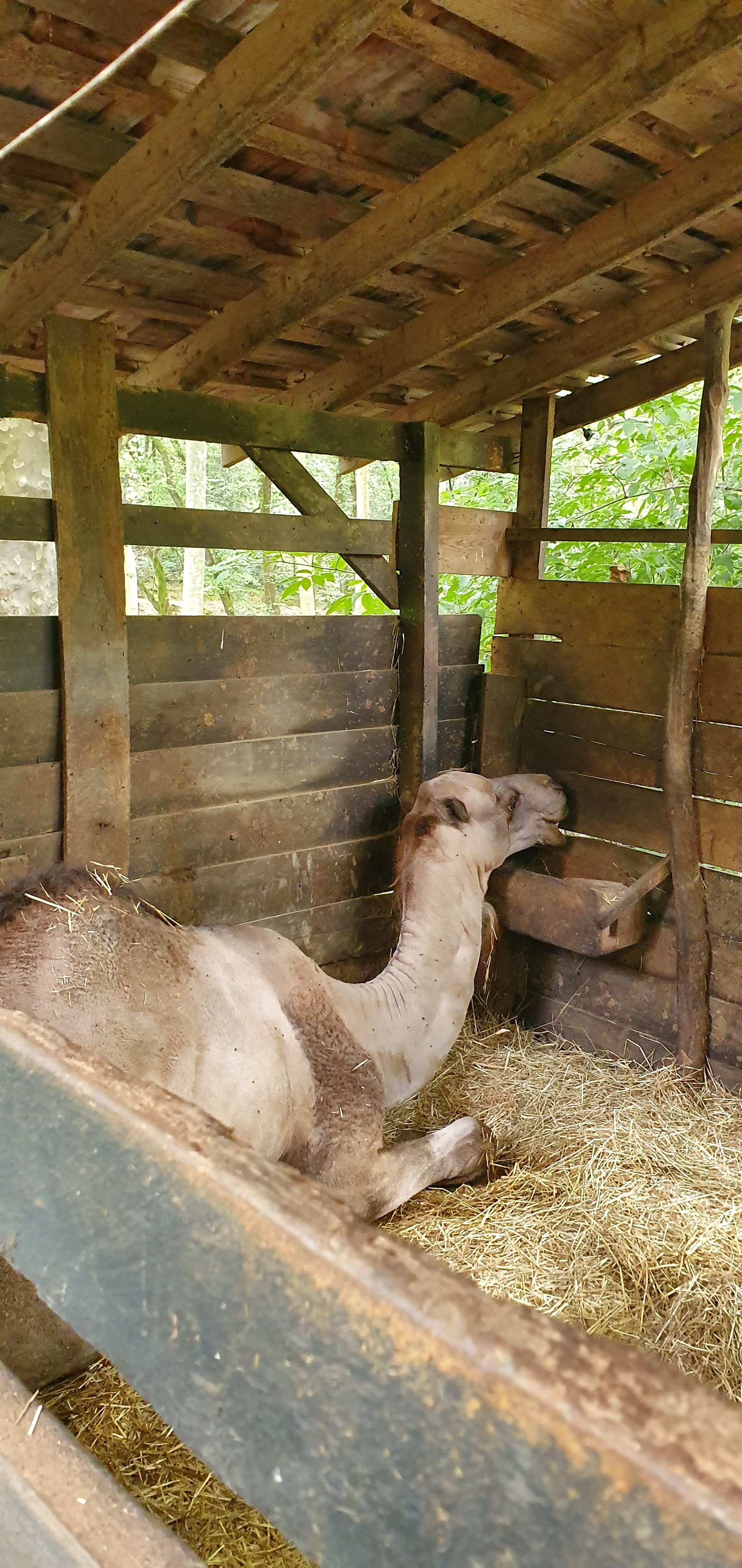 Je ne recommande pas ce parc animalier. Je me suis posé la question de l'entretien des enclos et le bien-être des animaux tout au long du parcours. Je pense que certaines odeurs à certains endroits du parc (vers les pauvres buffles d'eau par exemple) ne laissent que peu de doutes. Je pense également que les animaux n'ont pas assez d'espace, je pense en particulier au dromadaire et aux animaux en cage. Je pense également que les deux bassins (les deux bassines?) sont une ridicule tentative d'ornement dont pâtissent les malheureux poissons qui y survivent. Alors, oui, les enfants apprécient le parc car ils sont autorisés à donner à manger aux animaux (les zoos l'interdissent mais bon...), du pop-corn est même vendu à l'entrée. Alors, oui, le parc est à l'ombre et une balade d'une heure en famille c'est agréable. Et oui, l'entrée n'est pas chère. Mais ce n'est pas ce que nous recherchons, nous aurions préféré payer le double si nous avions vu un parc mieux entretenu et des animaux plus respectés.